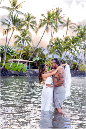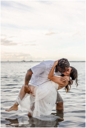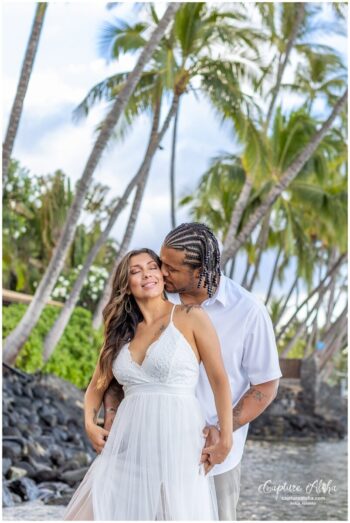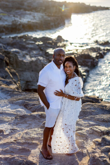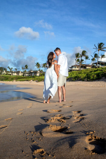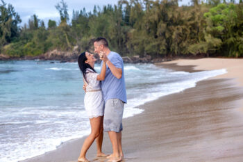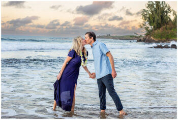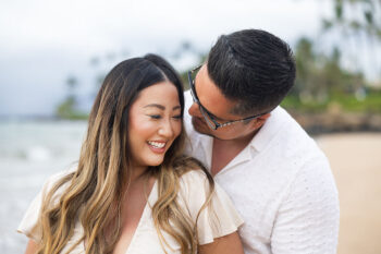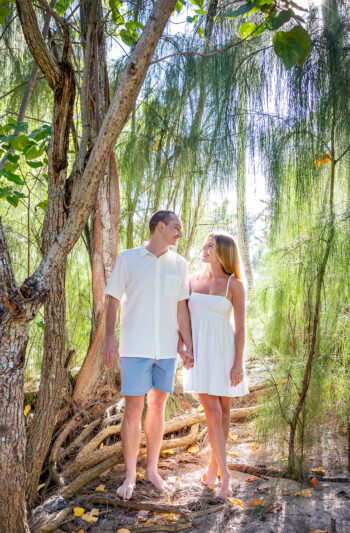 When it comes to your attire for your engagement photos, we think that you should go with solid colors because they typically photograph well. Bold patterns tend to run the risk of being distracting, so we recommend softer colors. Also, neutrals such as light blues, creams, greens, whites, or soft pinks make for excellent choices, especially if your session is on the beach. If you want to include anything personal as a memory keepsake in your photos, we encourage it, such as hakus,leis or any other item. We also prefer going barefoot in your photos, so you shouldn’t have to worry too much about proper footwear.
