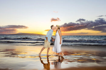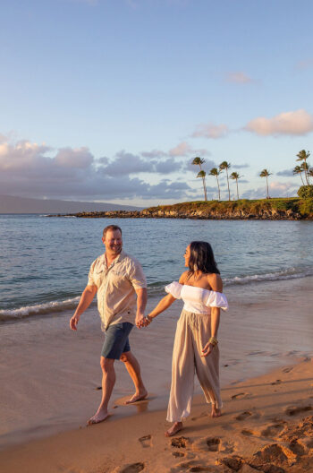 Whether you are having an engagement session or a couple’s portrait shoot, we recommend having these sessions on the beaches here in Maui, especially the West Side or South Side. After all, how can you go wrong with some of the most beautiful beaches in the world? Along the west side, we love Kapalua Beach, Ironwoods/Oneloa and DT Flemings. Each beach has very different views and landscapes. On the south side, we recommend Po’olenalena Beach, Wailea Beach, Makena Surf and Maluaka Beach. If you want something more than a beach, we are also more than happy to come to your resort or condo to photograph you there as well!