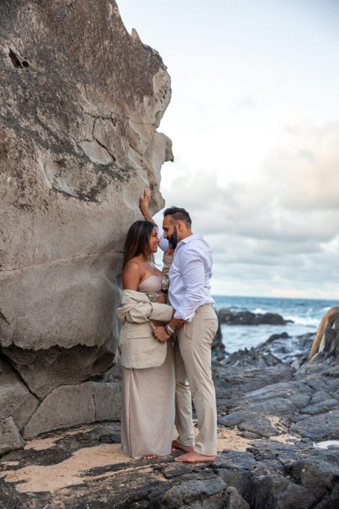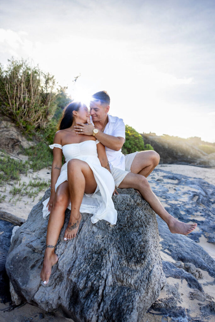 We also coach you on the little things that matter. Where to stand so your faces catch the light. Which direction to turn so the ocean looks epic behind you. When to reach for the ring so it feels smooth, not frantic. You won’t feel staged, but you’ll look amazing.