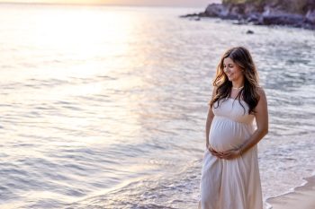 In addition, unless we are doing indoor photography, we recommend scheduling your maternity session for early morning or at sunset. Not only do you get amazing photos of the sun grazing the top of the ocean waters, but you also typically won’t get shadows and that harsh overhead lighting.
