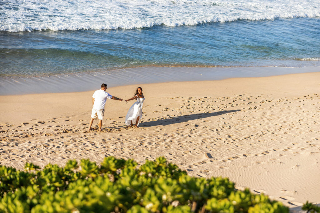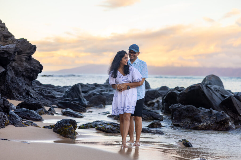 If you’re drawn to something more rugged and romantic, Ironwoods Beach (also known as Oneloa) is a must-see. This wide, open stretch of sand is framed by lava rock cliffs and windswept dunes that give your photos a cinematic, natural vibe. It’s a hidden gem that feels private and peaceful — perfect for couples, maternity, and family portraits that capture Maui’s untamed beauty.
