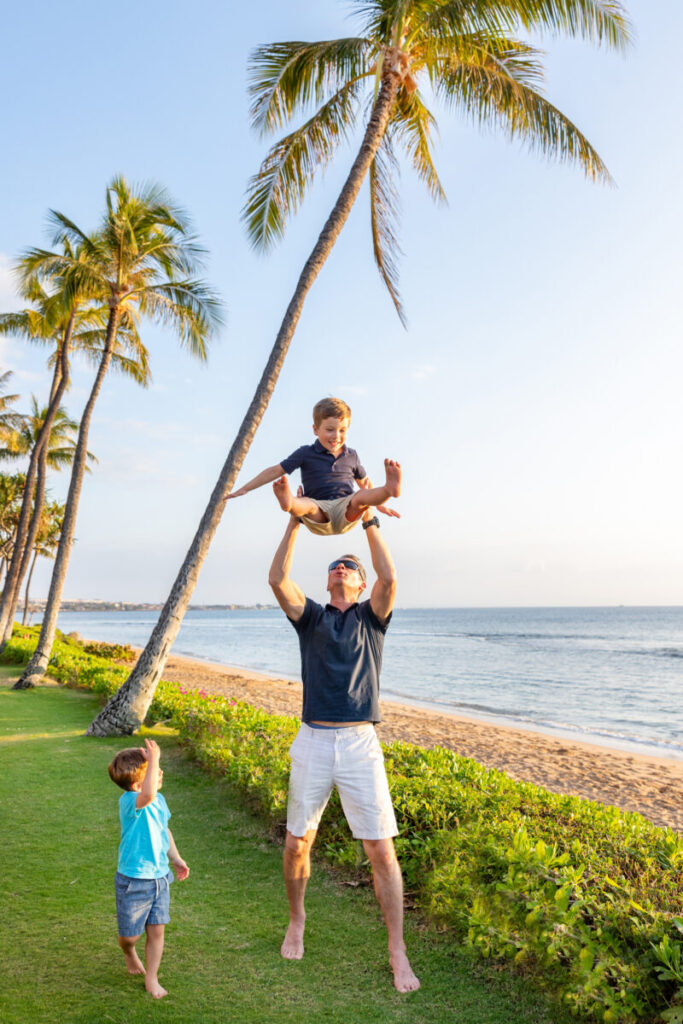 We love photographing Maui family photos here because it offers a variety of backdrops in one small area — tropical palms, clear ocean water, and even rocky tidepools for adventurous kids. The easy parking, restrooms, and walkable layout make it one of the most convenient and family-friendly photo spots on the island.